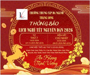 Trường Trung cấp Đa ngành Thăng Long thông báo lịch nghỉ tết Nguyên Đán Bính Ngọ 2026